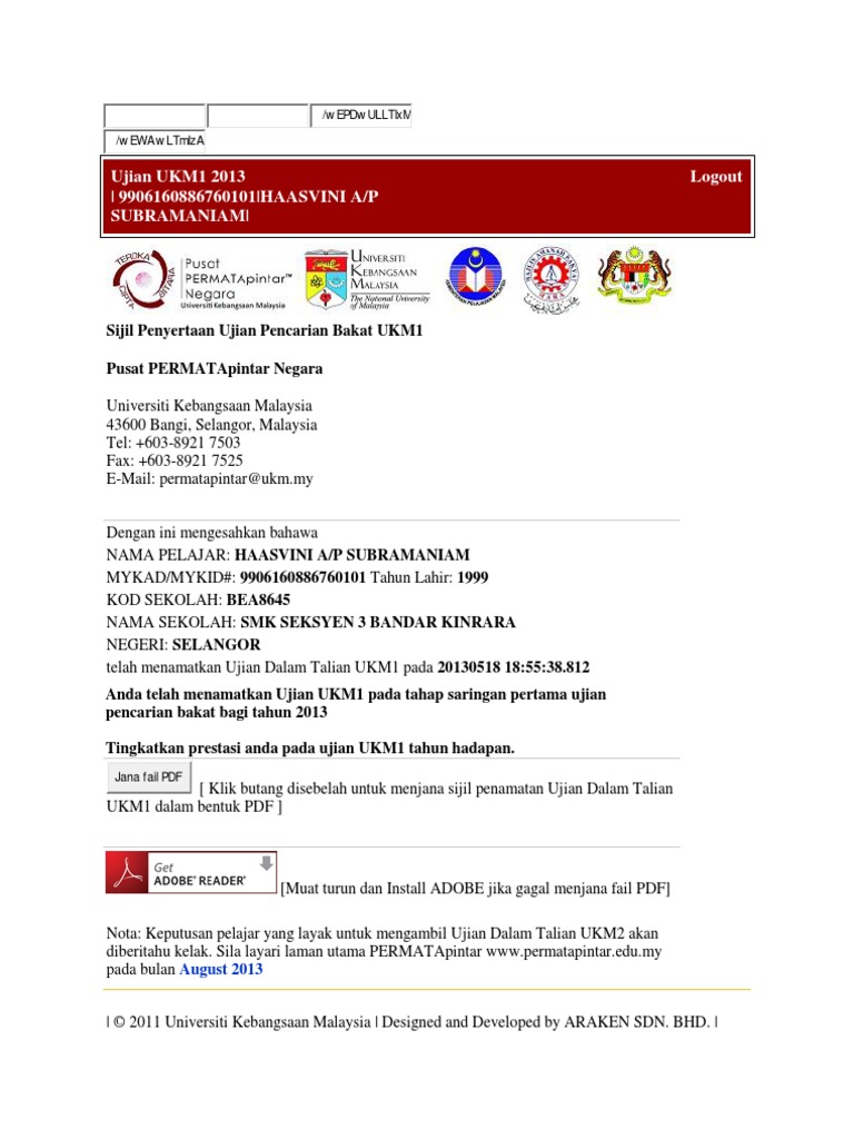 Ujian Pencarian Murid Pintar Ukm1 Ukm2 Ukm3 Genius Pintar